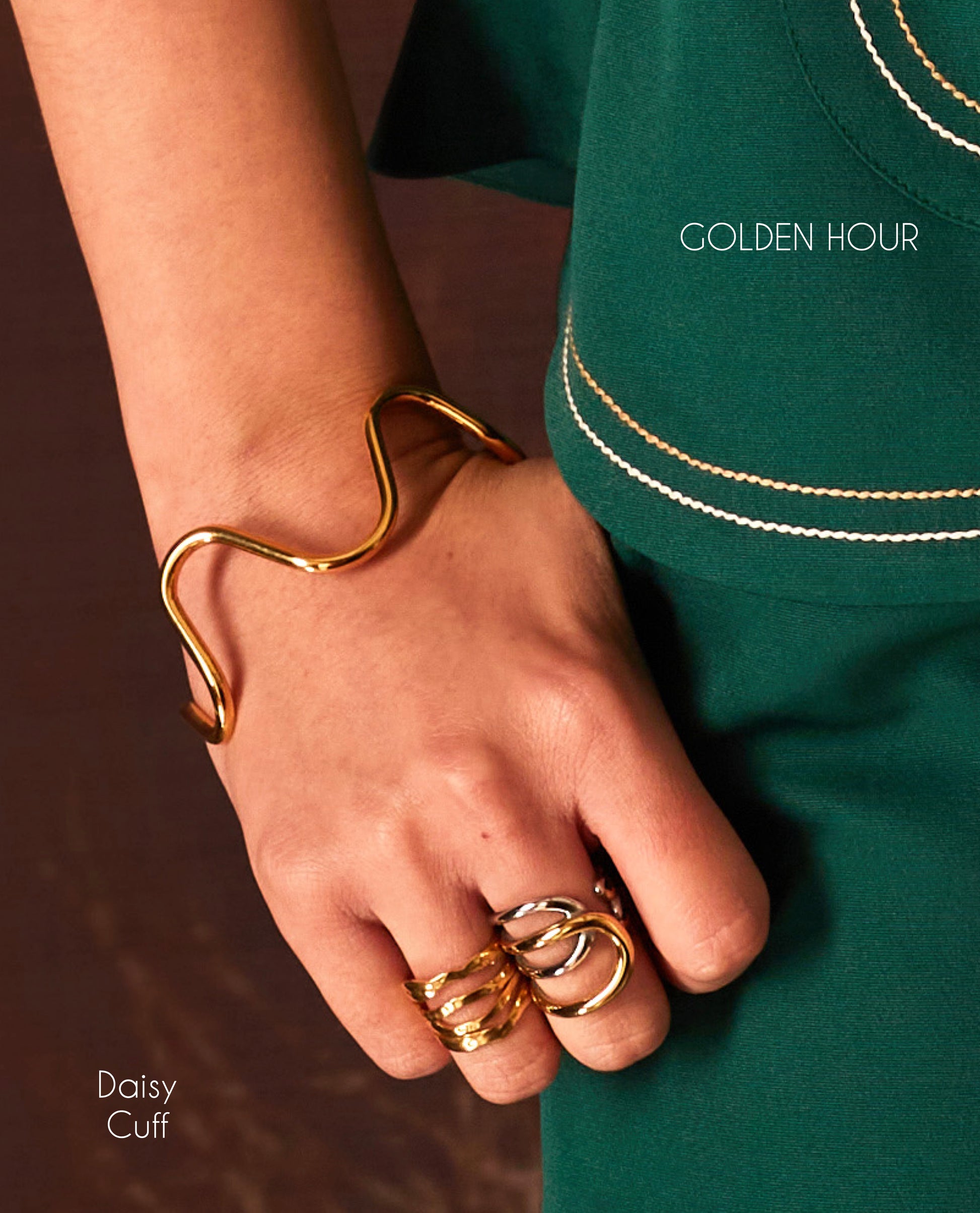 Spruce up your wrist game with our Golden Hour - Daisy Cuff! This unique twist on the Amorist Bella Cuff offers an adjustable fit and is crafted with 18k gold plating for a luxurious touch. Plus, it's anti-tarnish and water-resistant, so you can rock it all day, every day.